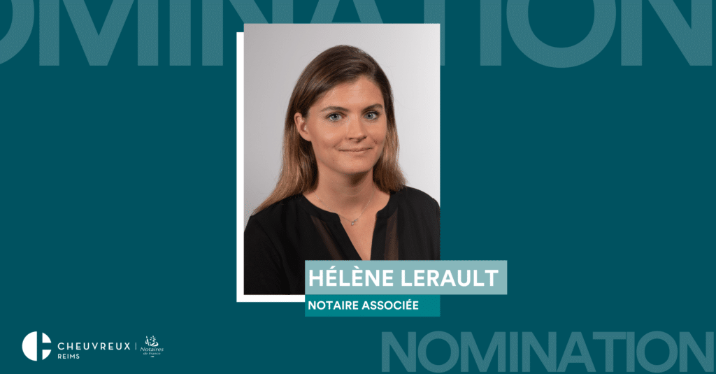 Suite à la publication de son arrêté de nomination au JO du 3 février 2023, Hélène LERAULT est désormais Notaire Associée de L’Étude Cheuvreux Reims aux côtés de Laurence REBOUL-DELLOYE, Baptiste DELLOYE et Christophe ETIEN. De formation généraliste, Hélène LERAULT intervient dans les dossiers de cession de fonds de commerce et actes relatifs au droit des sociétés, mais également aux problématiques liées à la transmission de patrimoine tant familial que professionnel.