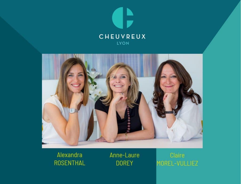 Cheuvreux est heureux d’annoncer qu' Anne-Laure DOREY-TABURIAUX, Claire MOREL-VULLIEZ et Alexandra ROSENTHAL sont nommées Notaires Associées de Cheuvreux Lyon, par arrêté ministériel du 8 novembre 2019 (JO 16 novembre 2019)
