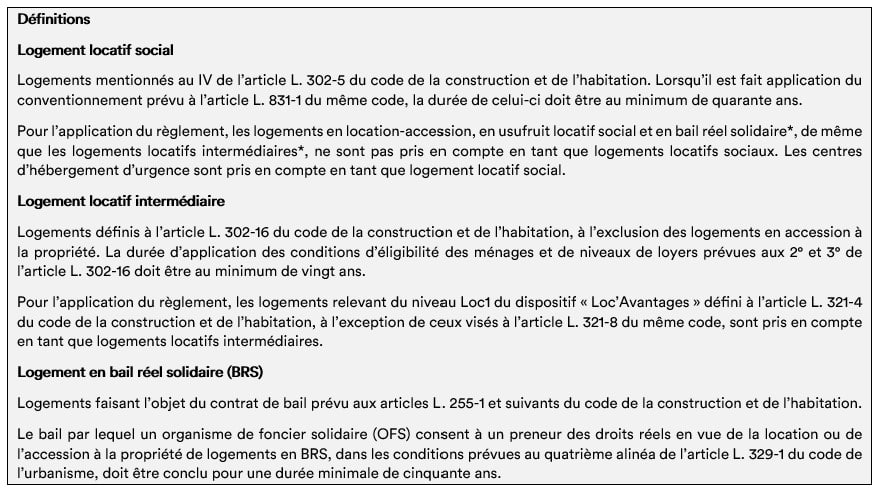 Les règles applicables à ces secteurs sont exposées dans la sous-section UG.1.5.1 du règlement. Le lexique du règlement du PLU précise la définition des catégories de logements utilisées dans un objectif de mixité sociale : logement locatif social, logement locatif intermédiaire, logement en bail réel solidaire. Ces précisions concernent notamment la durée du conventionnement.